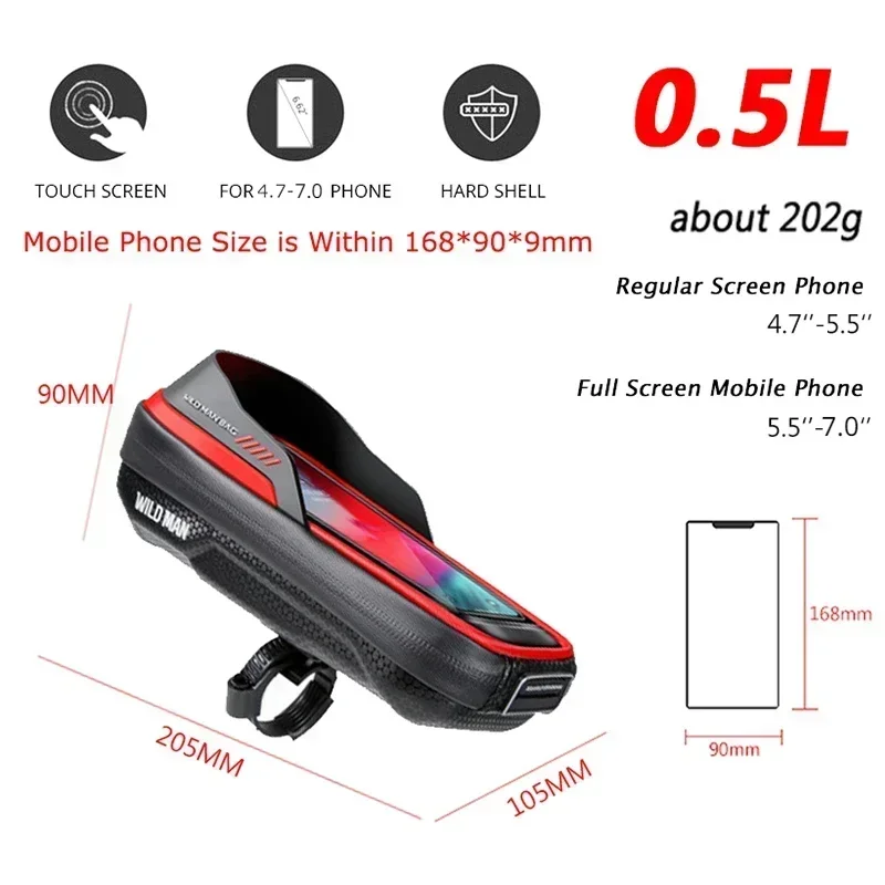 Wild Man Bicycle Stem Bag Touchscreen Folding Bike Front Bag Soft Shell 7.0″ Mobile Rainproof Case Phone Bag Acessories